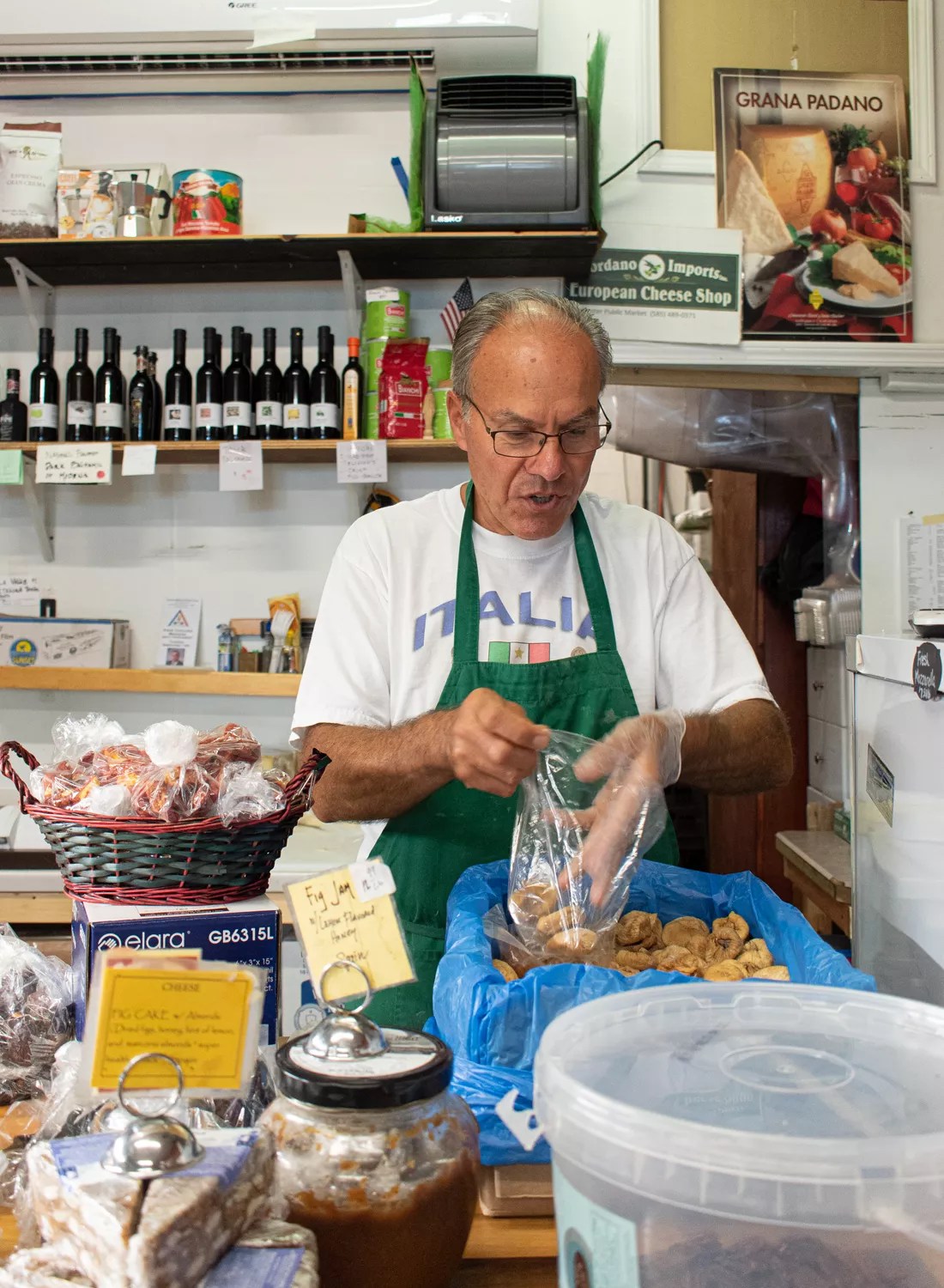 This love of foods, especially cheese, eventually led him to start selling the Italian goods for which he is known at the Public Market, at first as a weekend hobby. He opened his business as a single stand in the Public Market’s deli building offering Basilicata mineral water and extra virgin olive oil from his family’s olive orchards. But his knowledge of European food culture resonated with customers, and Giordano branched out to import foods from around the world and offer home-cooked meals.